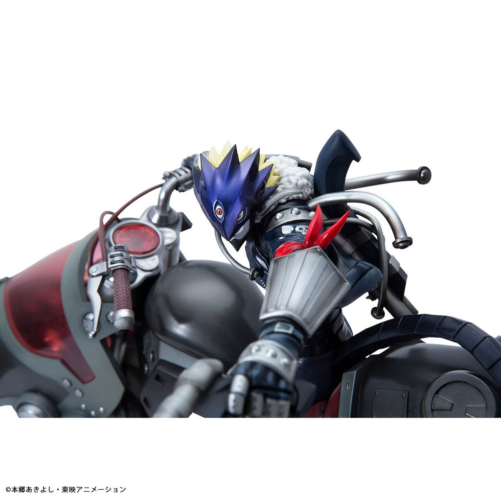 Celebrating the 25th anniversary of Digimon Tamers! Beelzemon & Behemoth return with extraordinary sculpting and paintwork. The massive Behemoth, measuring approximately 300mm in total length, is loaded with incredible detail: from headlights to gauge monitors, every part is rendered with care.